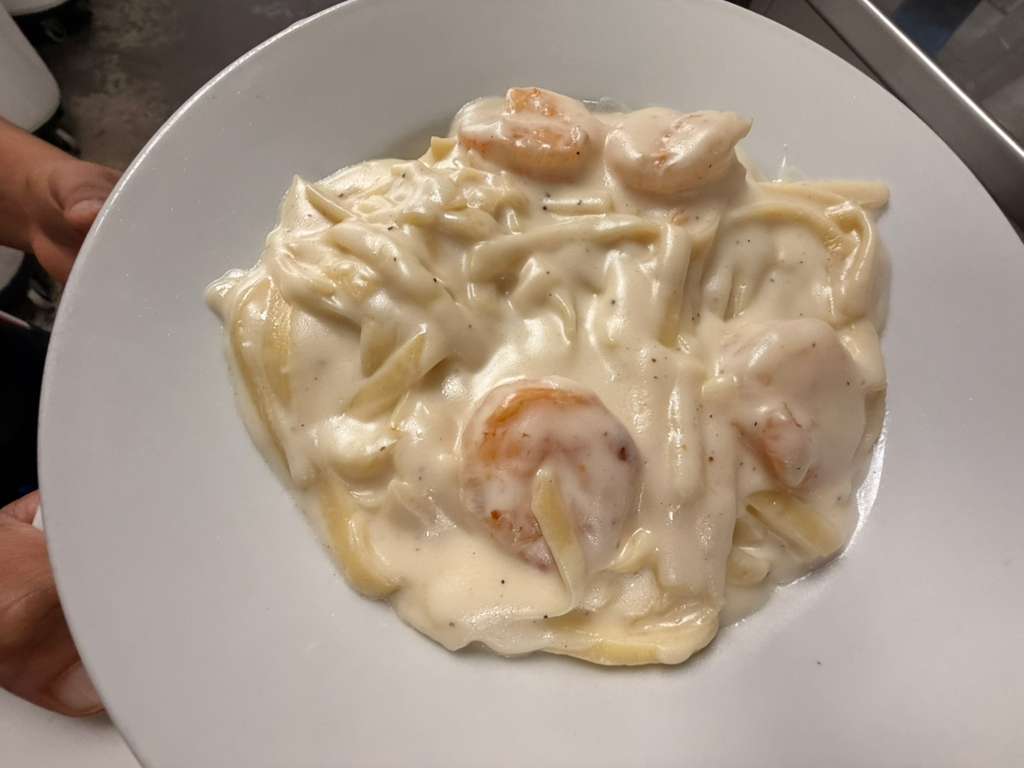 Chicken or shrimp and fettuccine noodles smothered with creamy parmesan sauce.